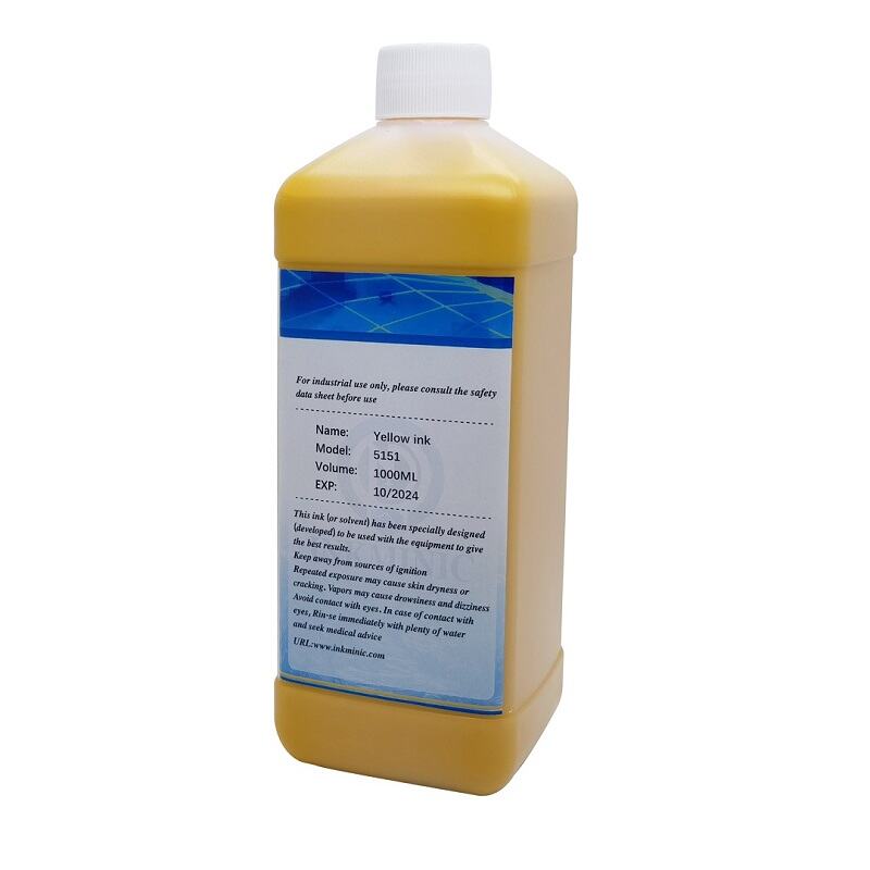 Yellow Micropigmented ink, no migration, constrast on dark & light surfaces, withstands water, pasteurization, alcohol.